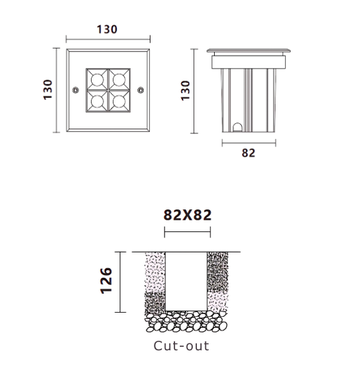 A solid recessed lighting fixture delivering efficient 75 lm/W output and IP67 protection against dust and water intrusion. Designed for reliable, long-lasting performance in both indoor and outdoor recessed installations.