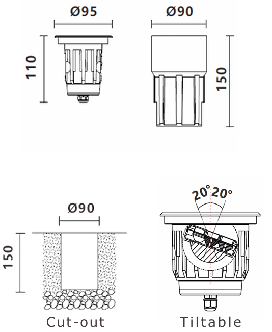Beam Angle:    Spot 15° / Flood 25° / 40° / 60°